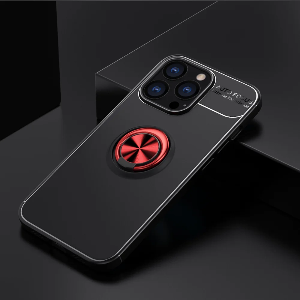 Eco-friendly TPU Soft Silicone Shockproof Phone Case with Metal Ring Stand for iPhone 12 11 Series