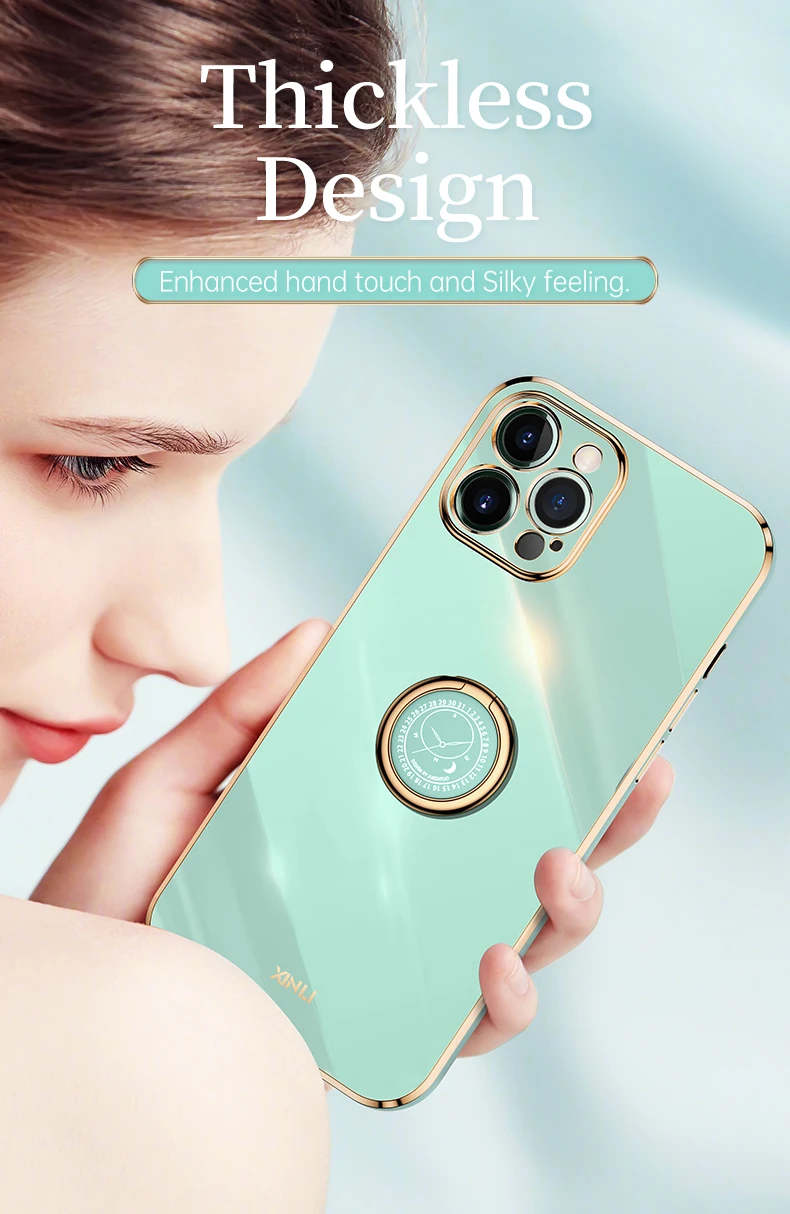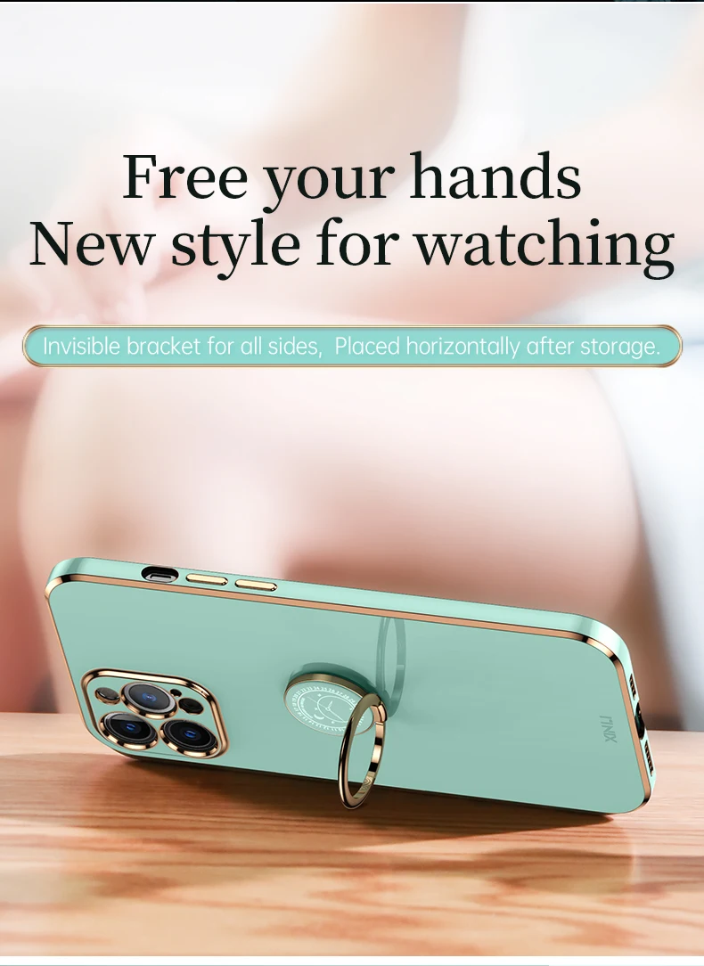 Square Plating Frame Soft Silicone Ring Stand Holder Phone Case For iPhone 12 11 Series