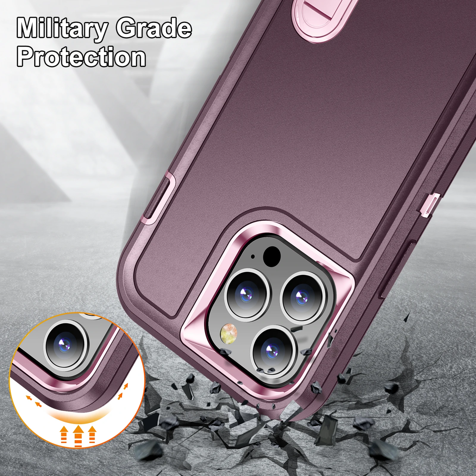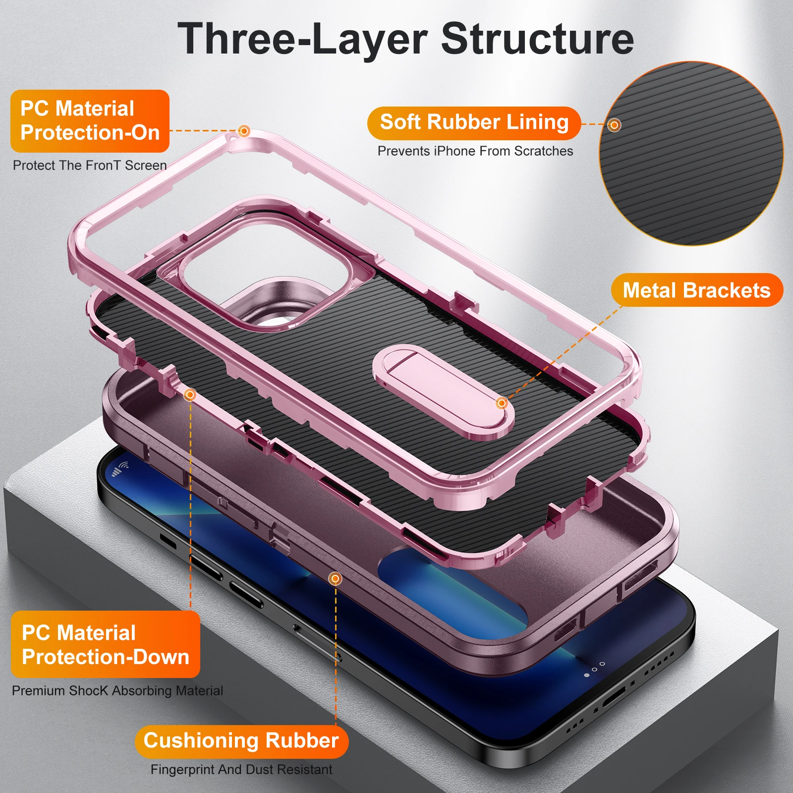 3 Layers Protection Military Grade Shockproof Heavy Duty Protective Case with Kickstand for iPhone 13 12 11 series