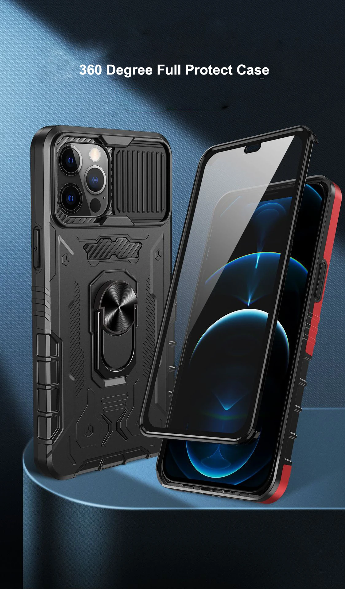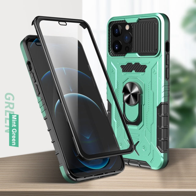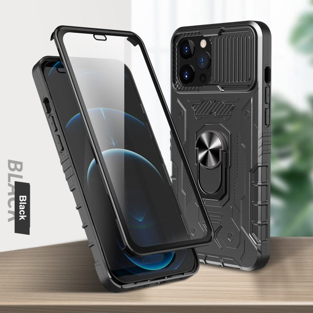 360 Full Camera Protector Tempered Glass Ring Holder Case for iPhone 13 12 Series