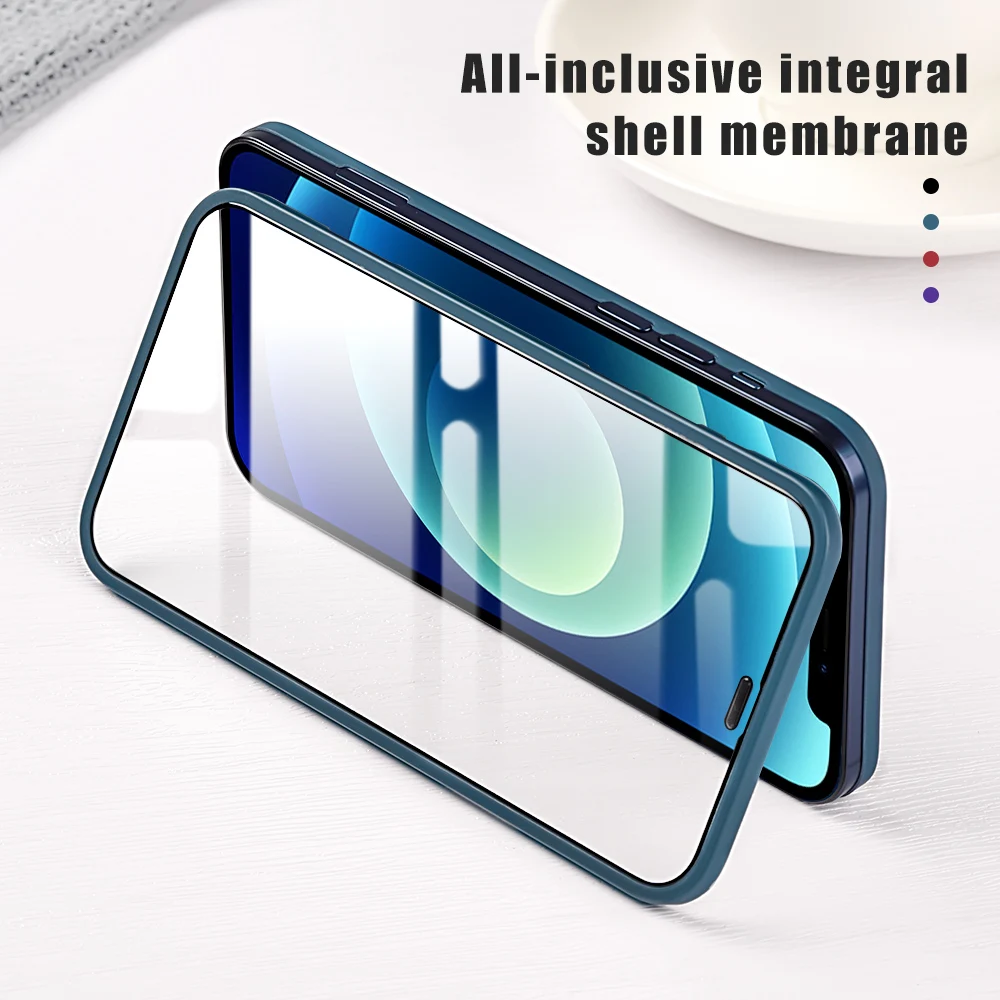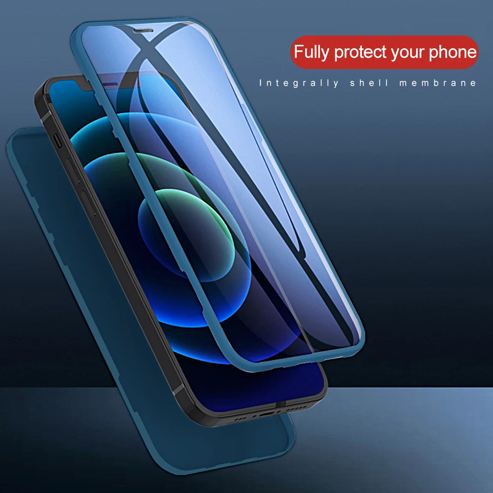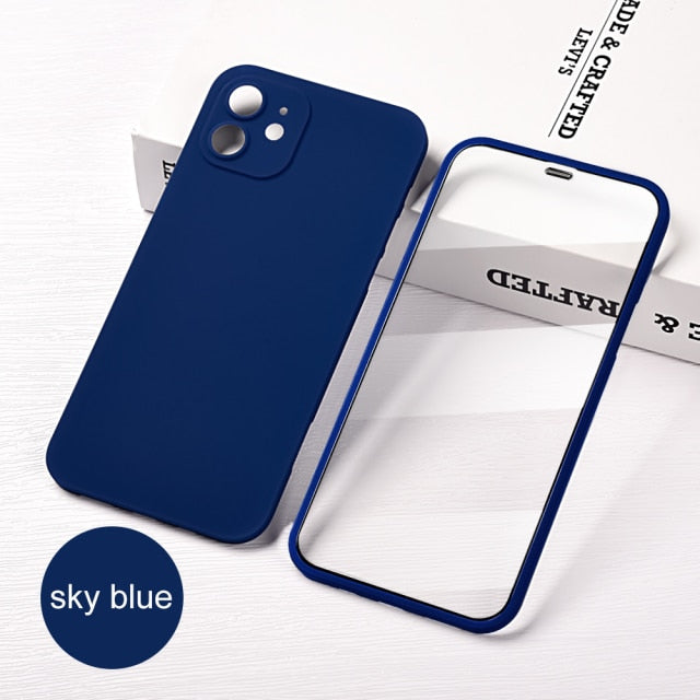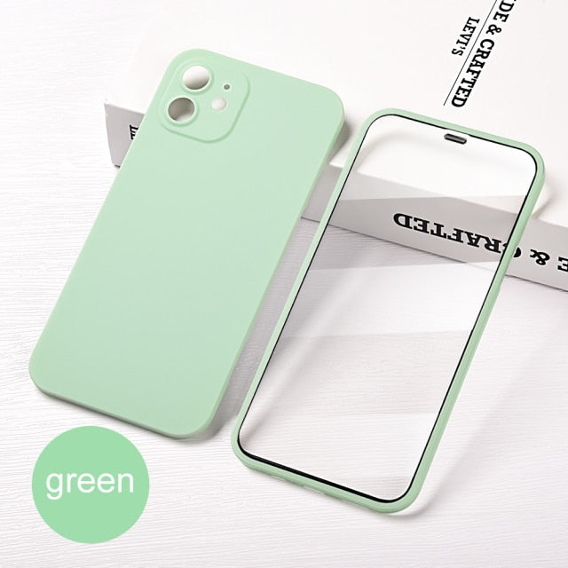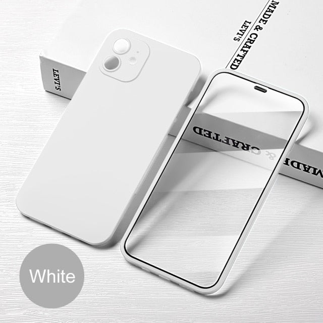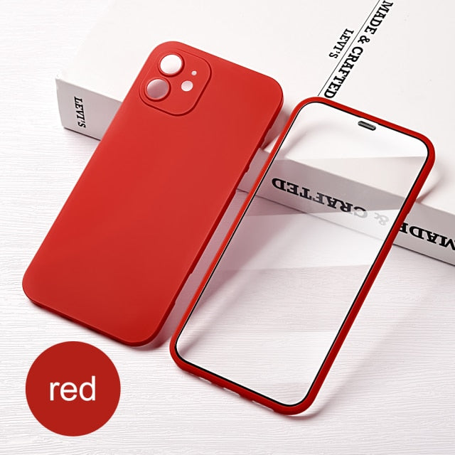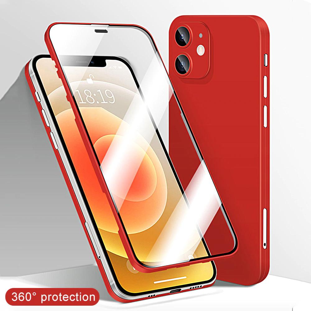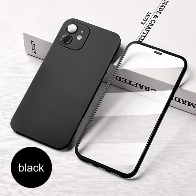 360 Full Cover Front Tempered Glass + PC Back Cover For iPhone 12 11 Series