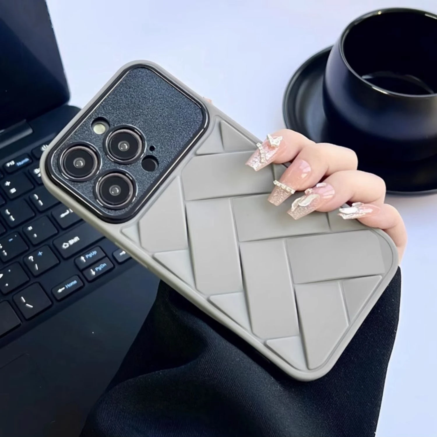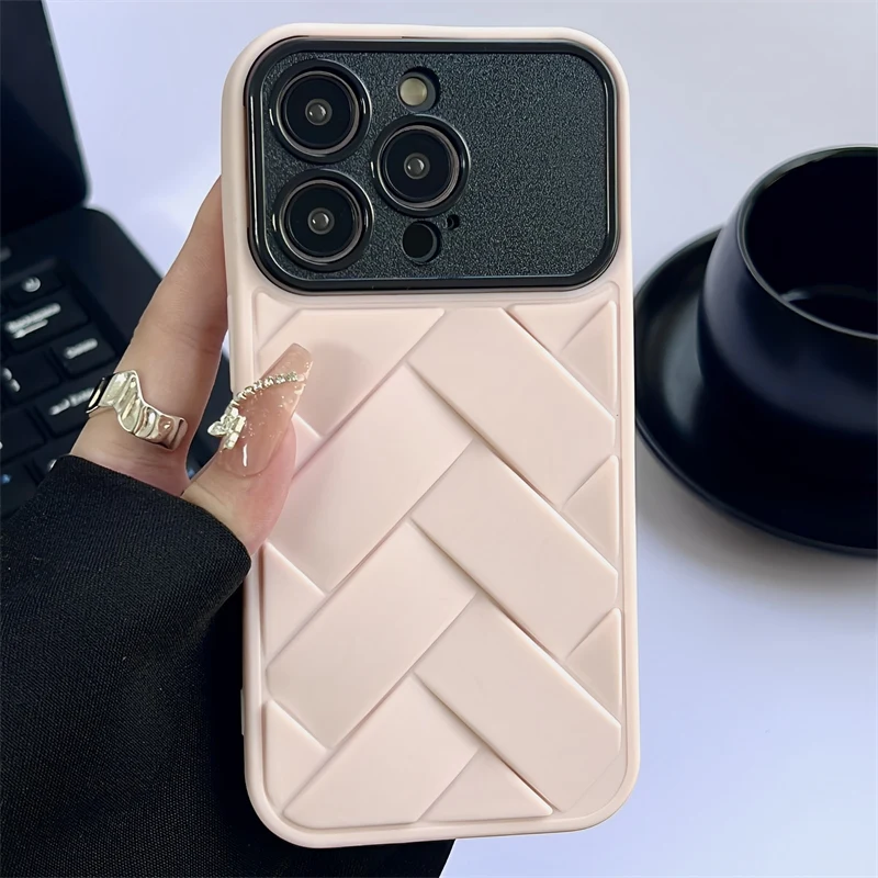 Braided Mesh Woven Grid Soft TPU Shockproof Case With Lens Protection for iPhone 15 14 13 12 series