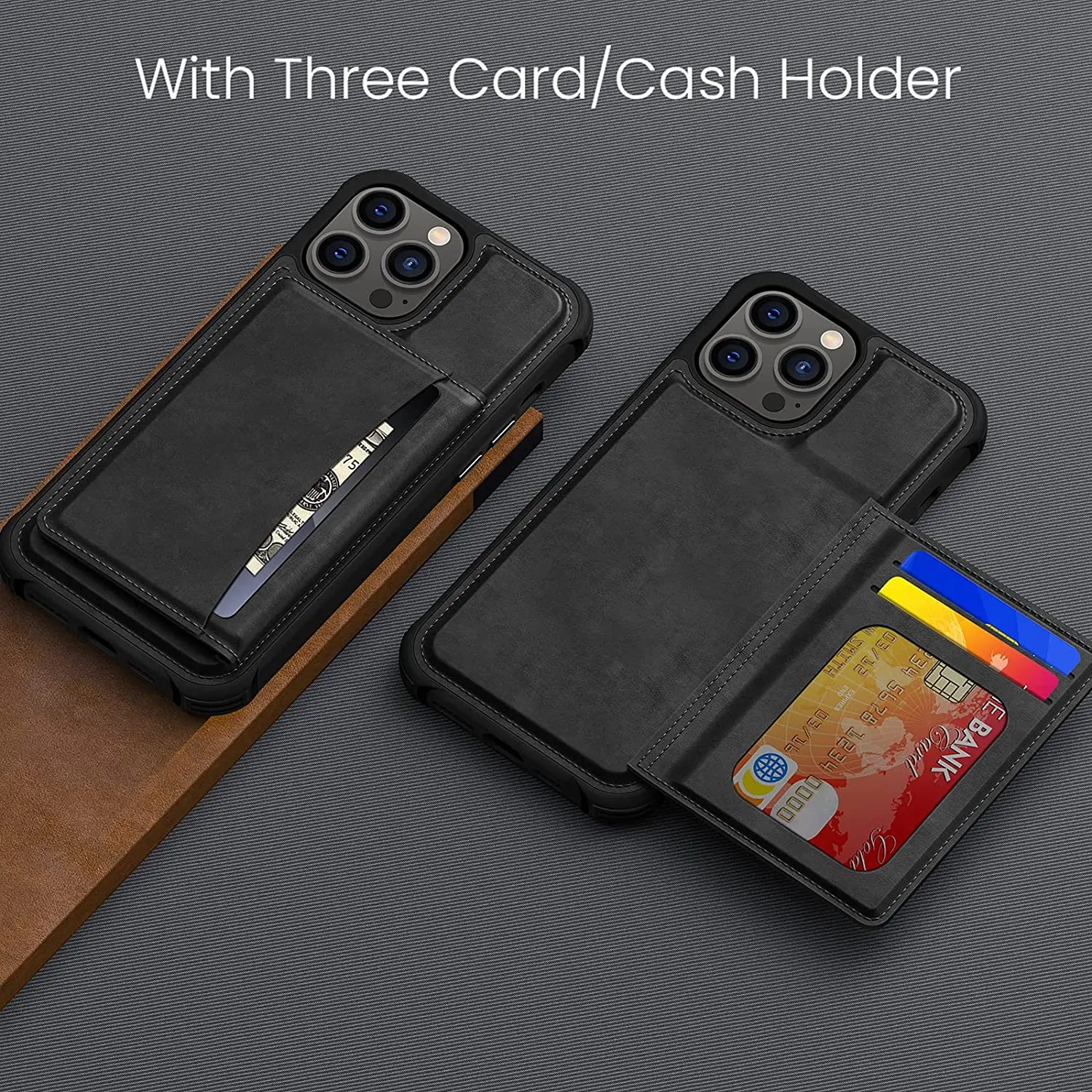 Card Slot Holder Leather Flip Magnetic Closure Case for iPhone 13 series