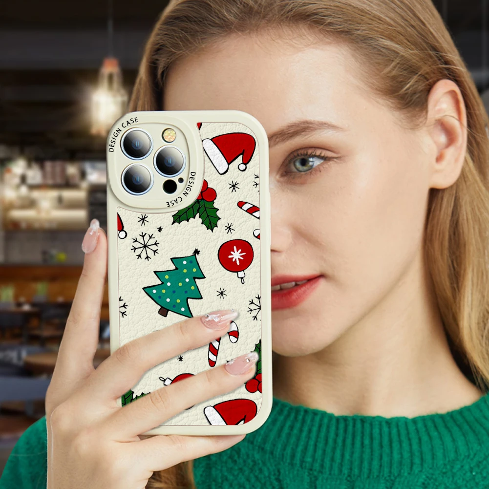 Christmas & New Year 2024 Anti-fall Lens Protective Phone Cases For iPhone 15 14 13 Series