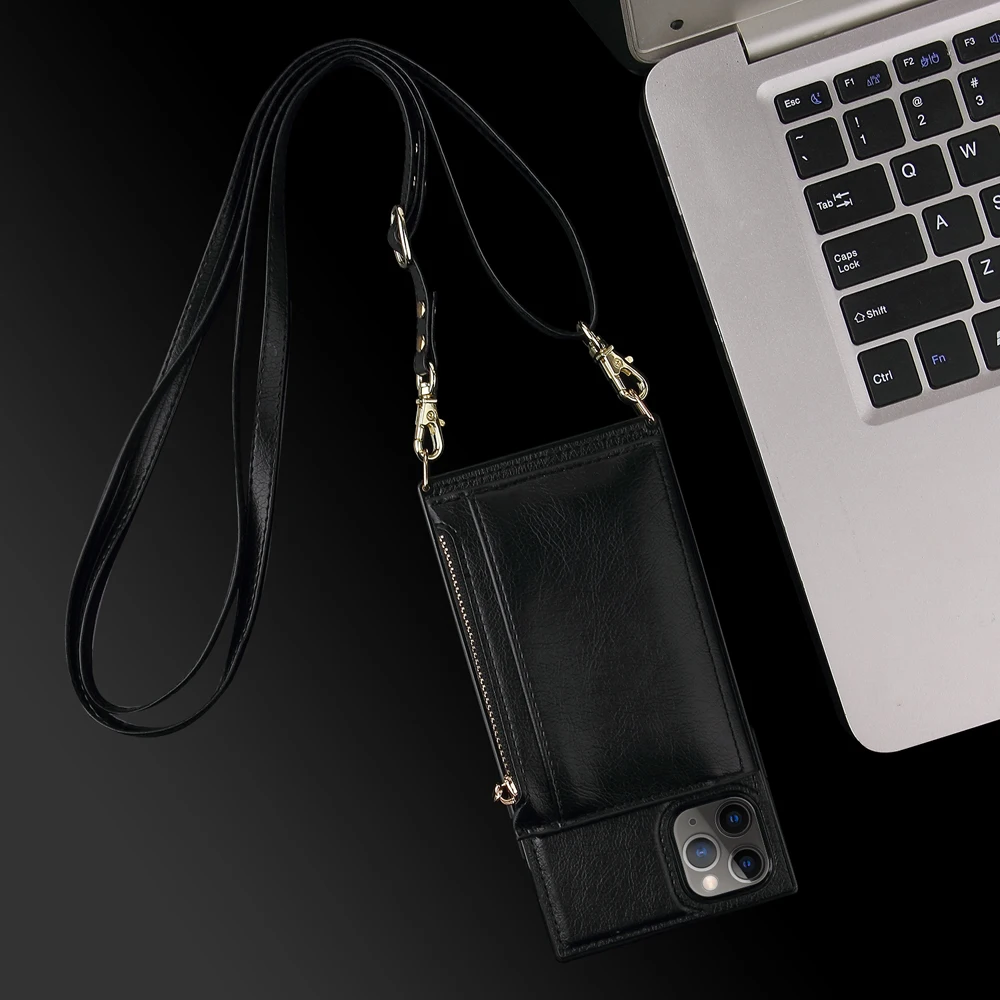 Crossbody Card Zipper Wallet Lanyard Holder Strap Pouch Cover Case for iPhone 12 & 11 Series