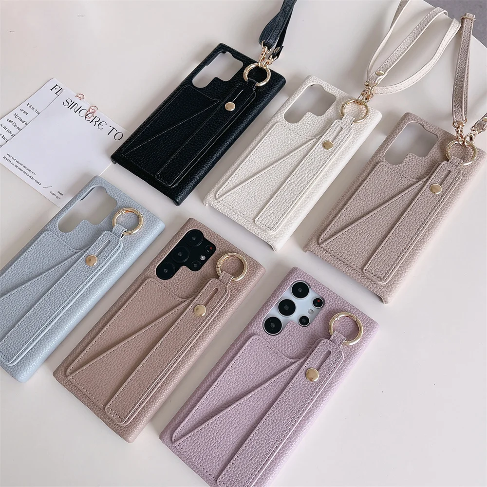 Crossbody Long Lanyard Card Holder Wallet Phone Case with Wrist Strap For Samsung Galaxy S23 S22 Ultra Plus