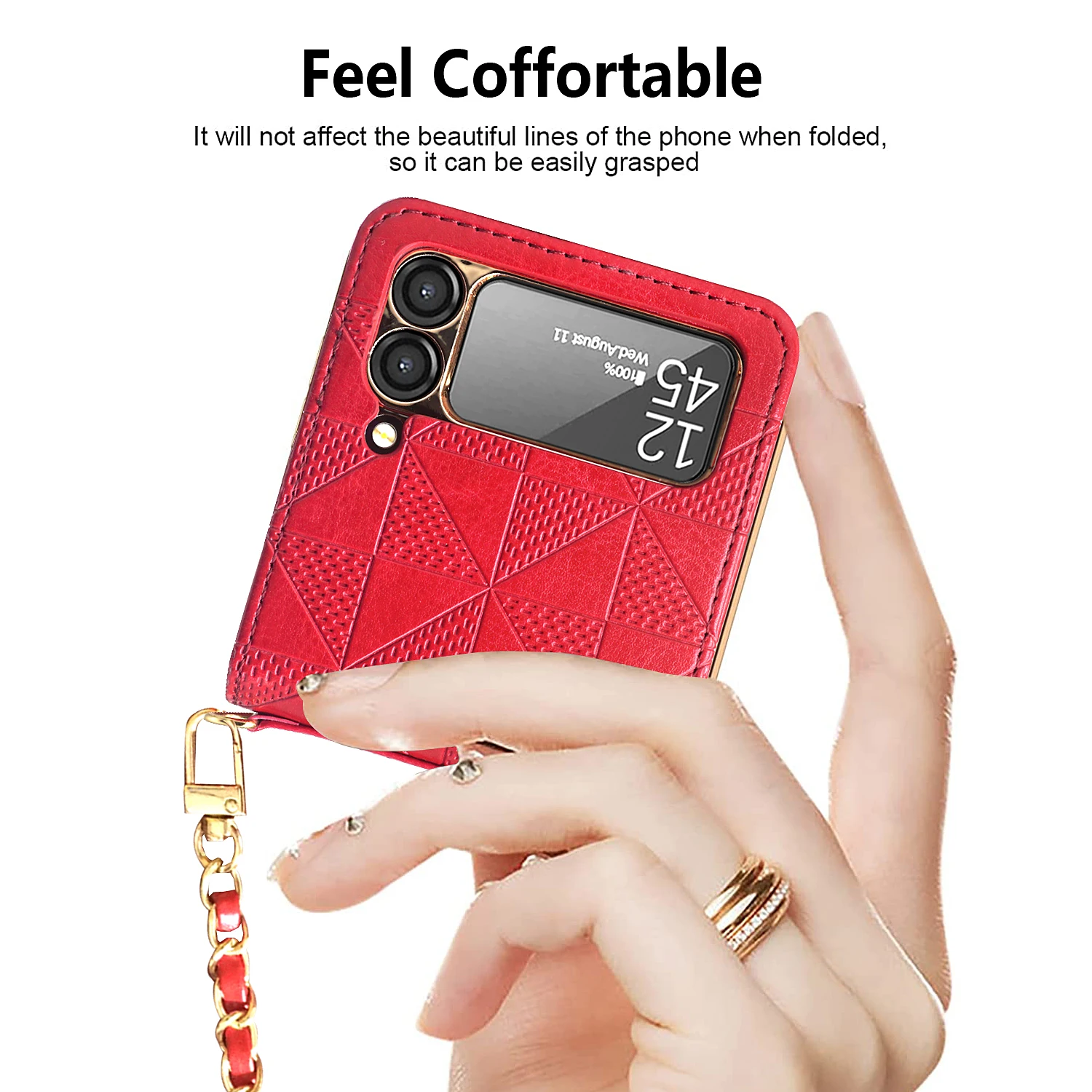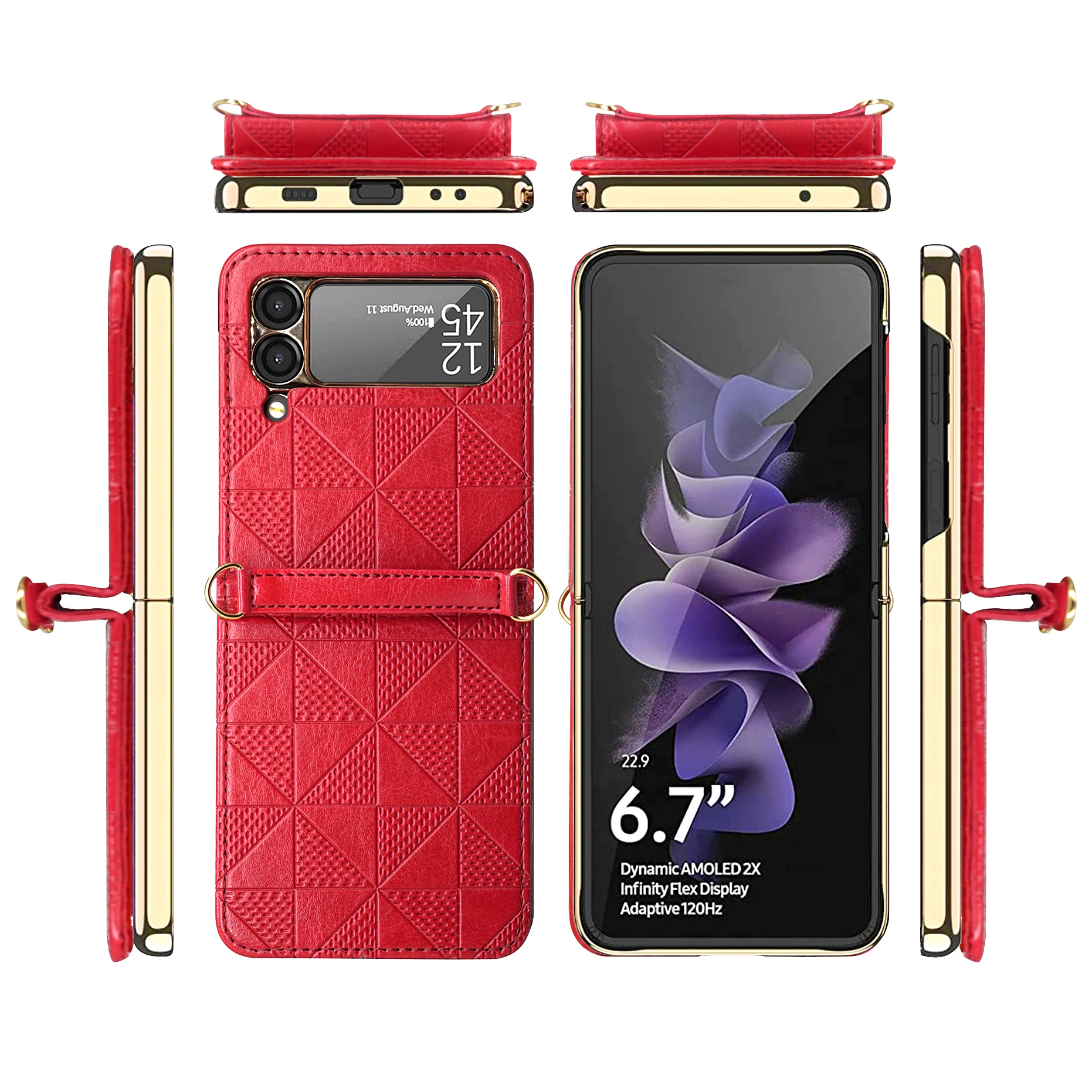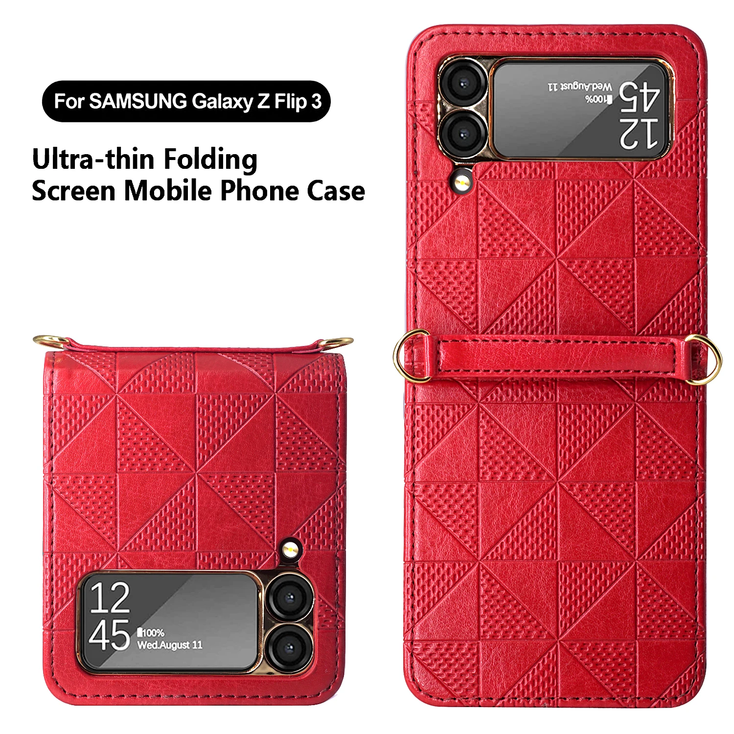 Diamond Texture Leather Case Crossbody Chain for Samsung Galaxy Z Flip 3