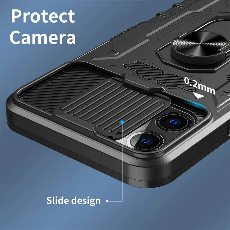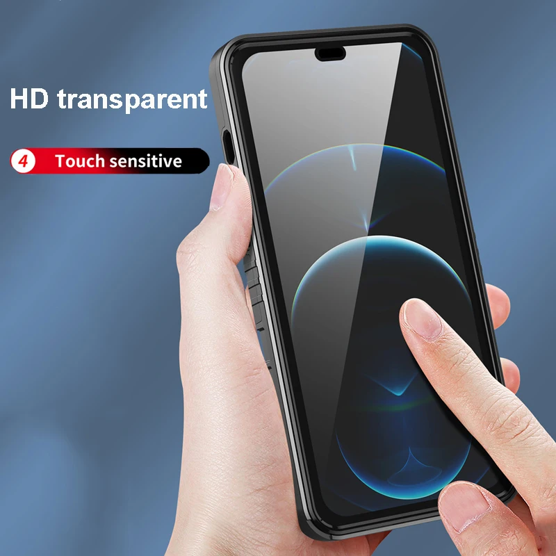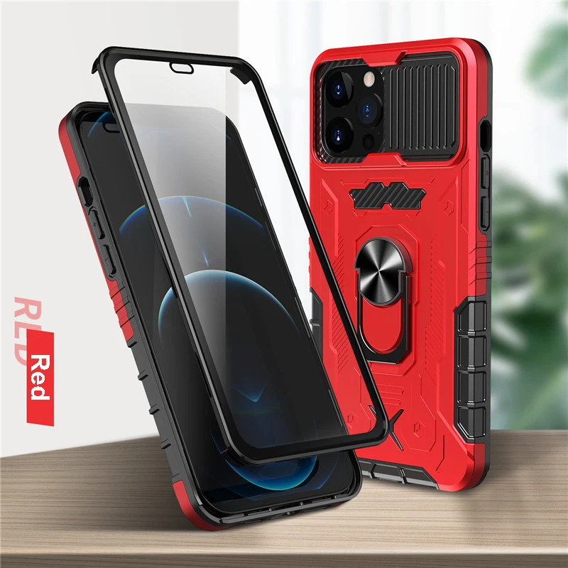 Double Sided Buckle Shockproof Armor Kickstand Holder Case with Tempered Glass Cover for iPhone 13 12 11 Pro Max