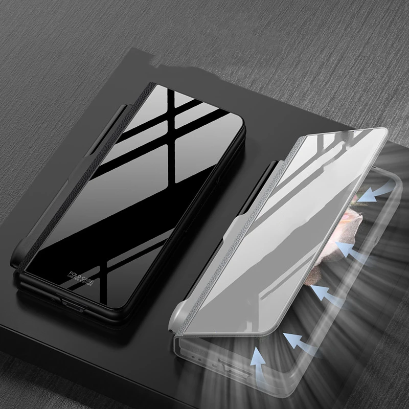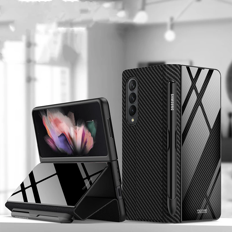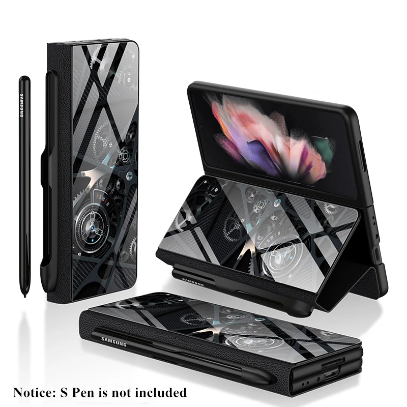 Glass And Leather Full Protection S Pen Holder Case for Samsung Galaxy Z Fold 3