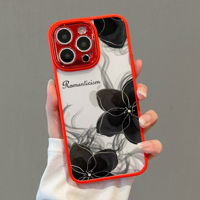 Goth Lily Diamond Lens Protection Soft Case For iPhone 14 13 12 series