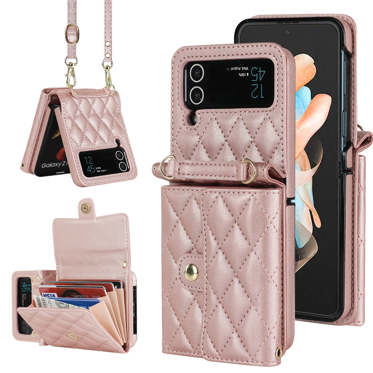Long Lanyard Wallet Card Slot Crossbody Leather Case For Samsung Galaxy Z Flip 4 3