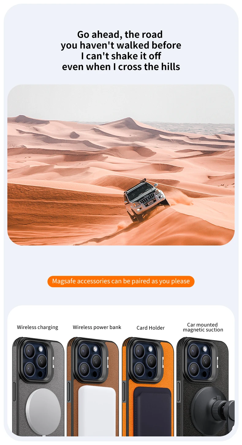 2024 Luxury Leather Magsafe Wireless Charging Shockproof Camera Protection Bracket Soft Case For iPhone 15 14 13 Series