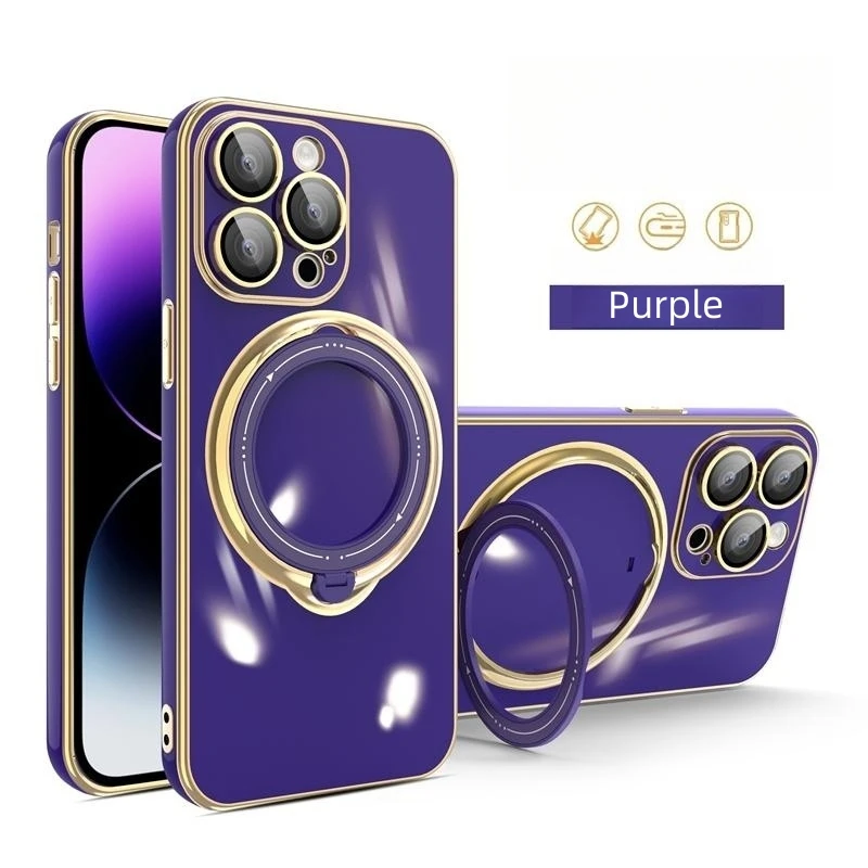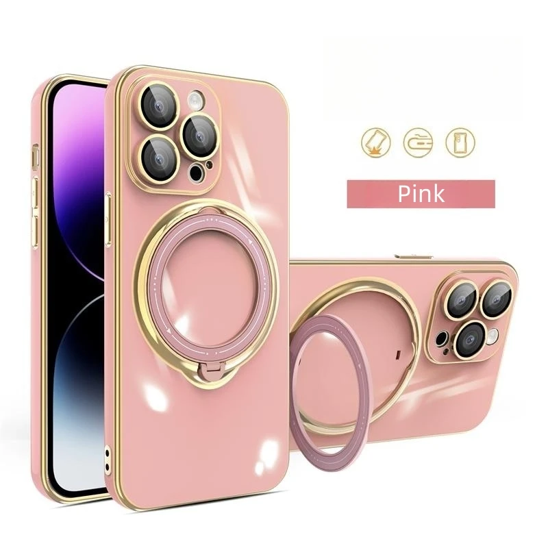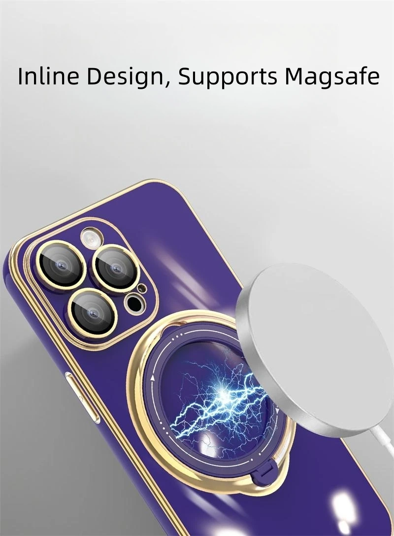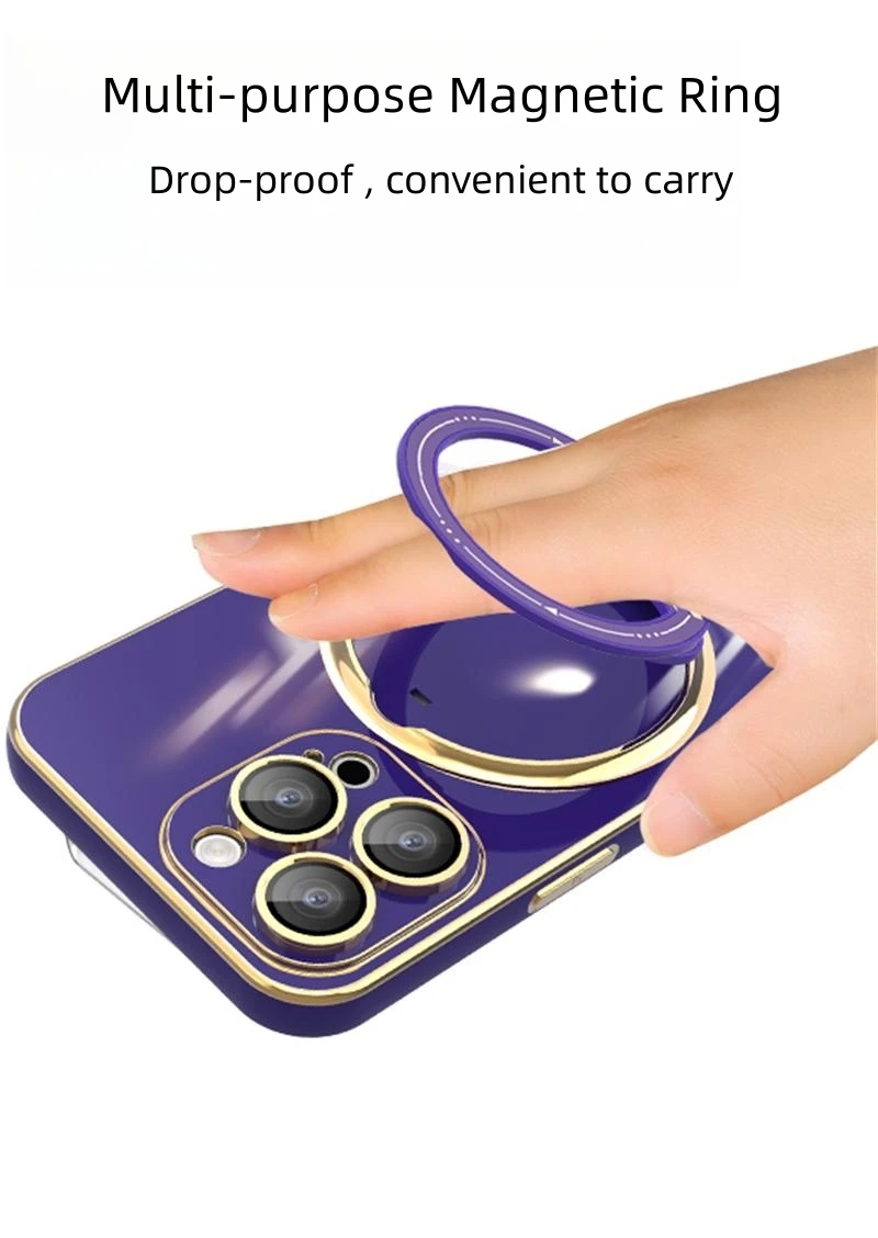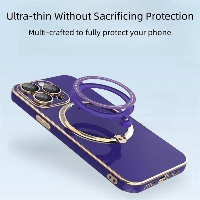 Luxury Plating Magsafe Bracket Magnetic Charge Ring Holder Case For iPhone 15 14 13 12 series