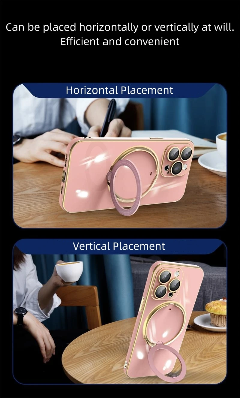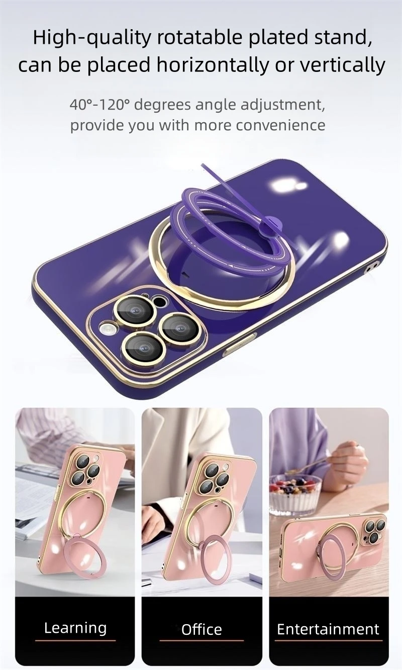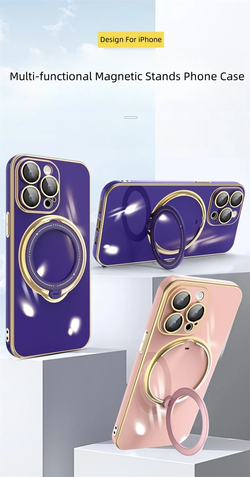 Luxury Plating Magsafe Bracket Magnetic Charge Ring Holder Case For iPhone 15 14 13 12 series