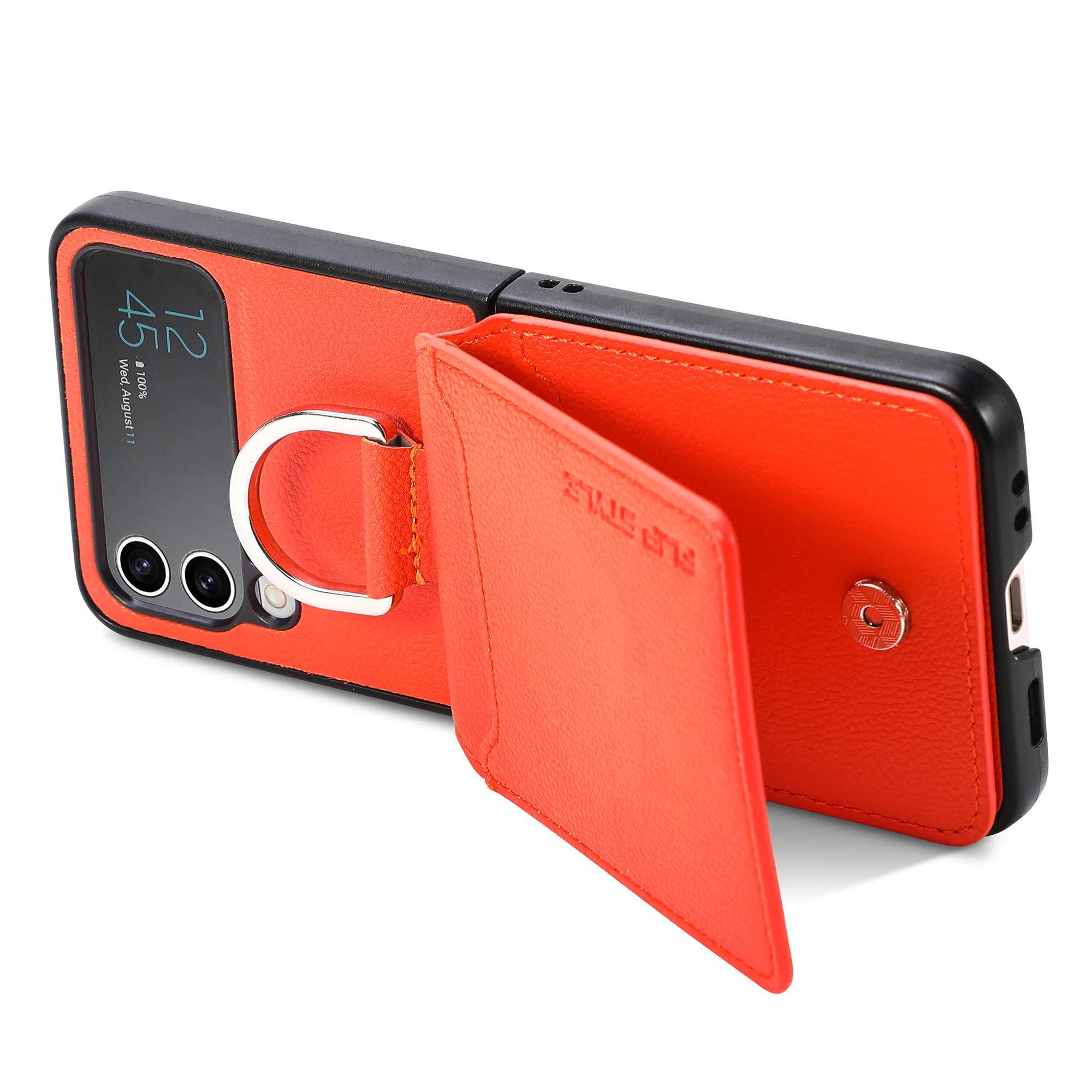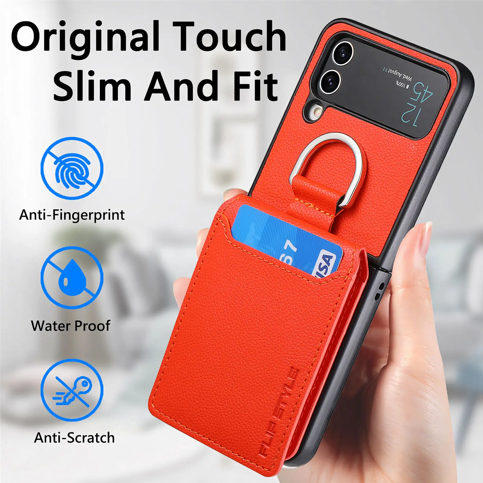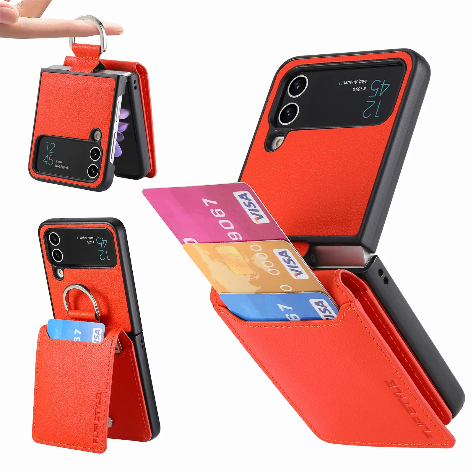 Magnetic Ring Holder Kickstand Vertical Leather Wallet Cards Solt Case for Samsung Galaxy Z Flip 4 3