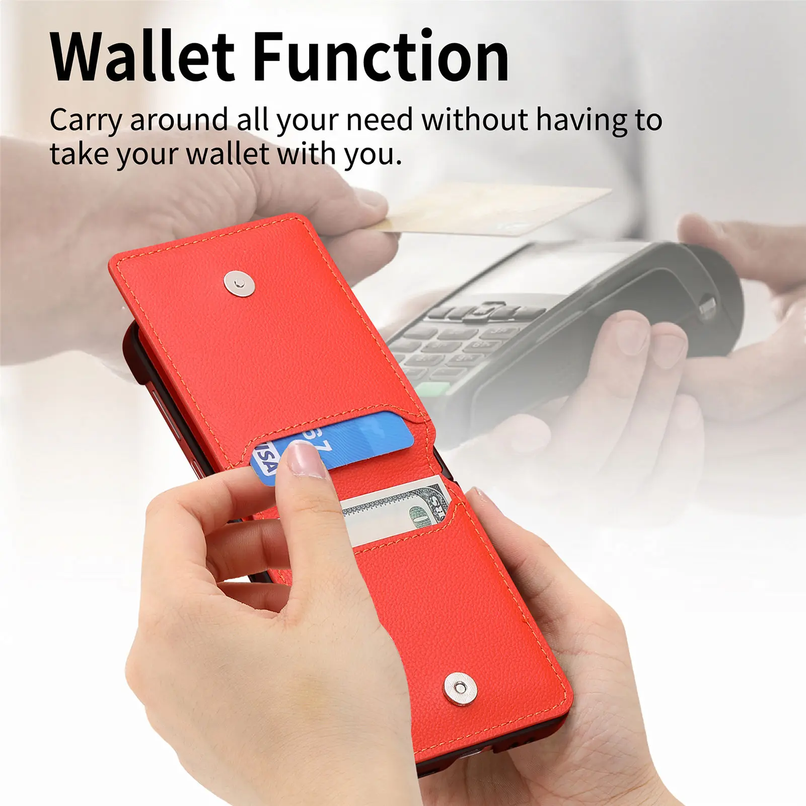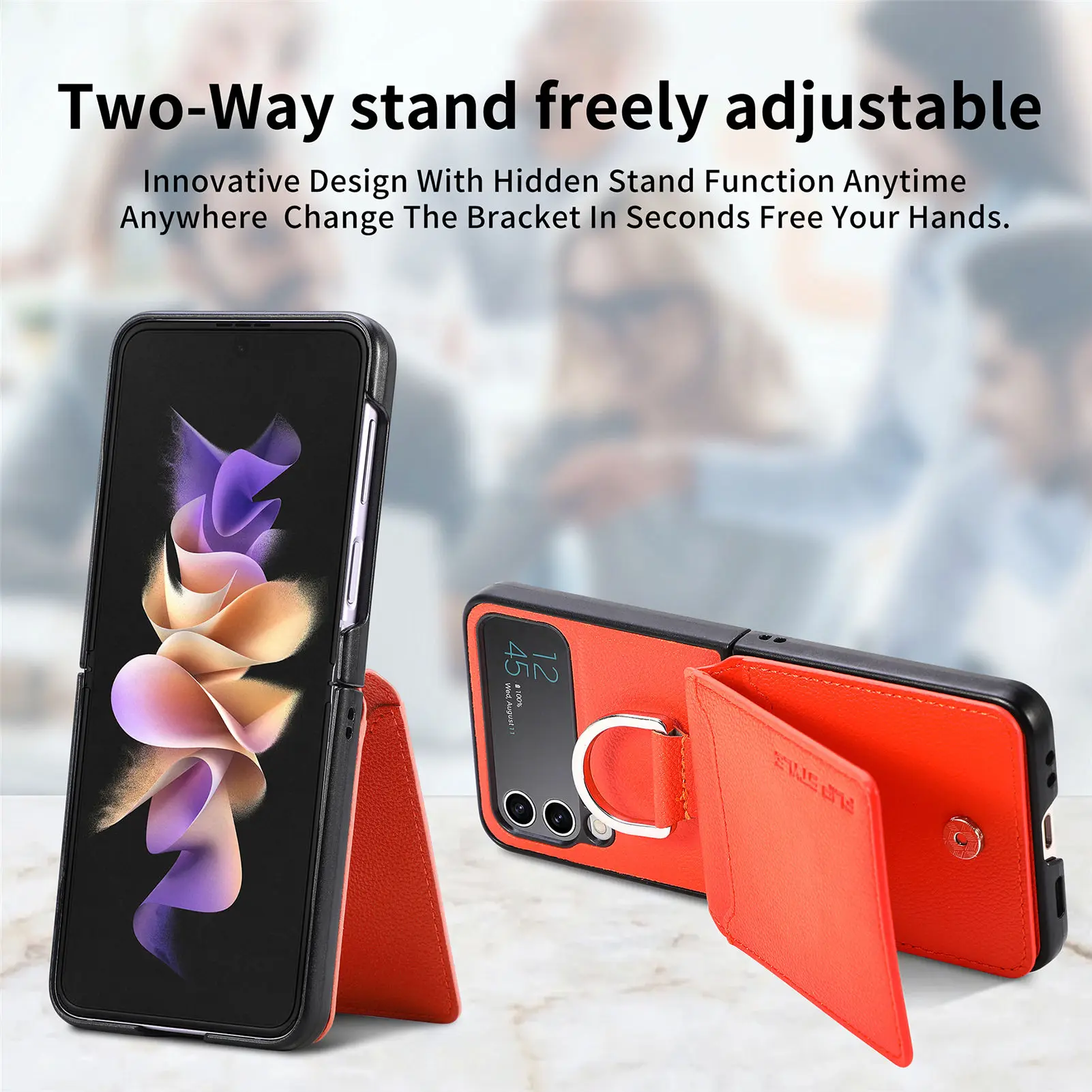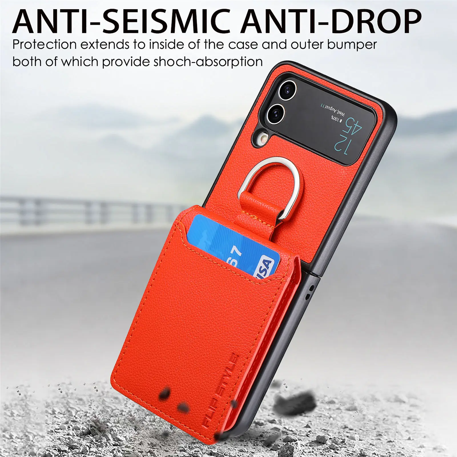 Magnetic Ring Holder Kickstand Vertical Leather Wallet Cards Solt Case for Samsung Galaxy Z Flip 4 3