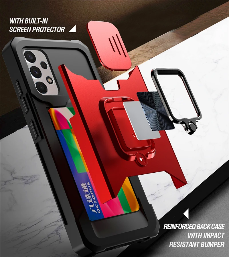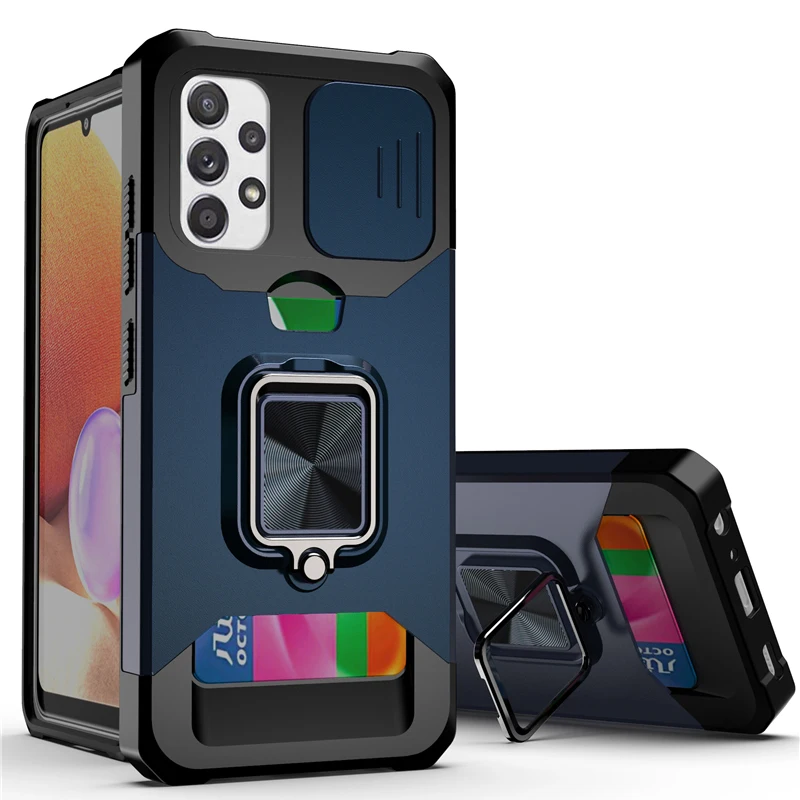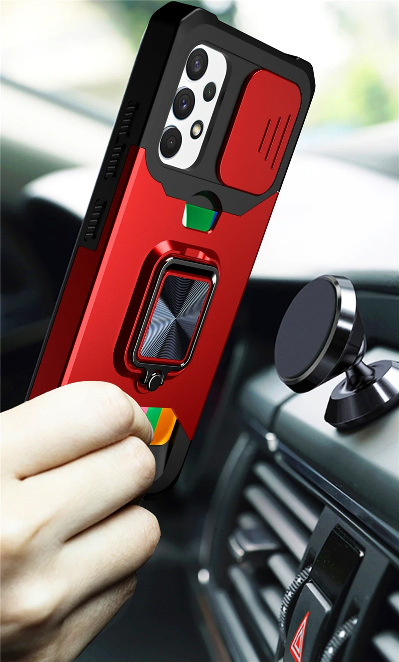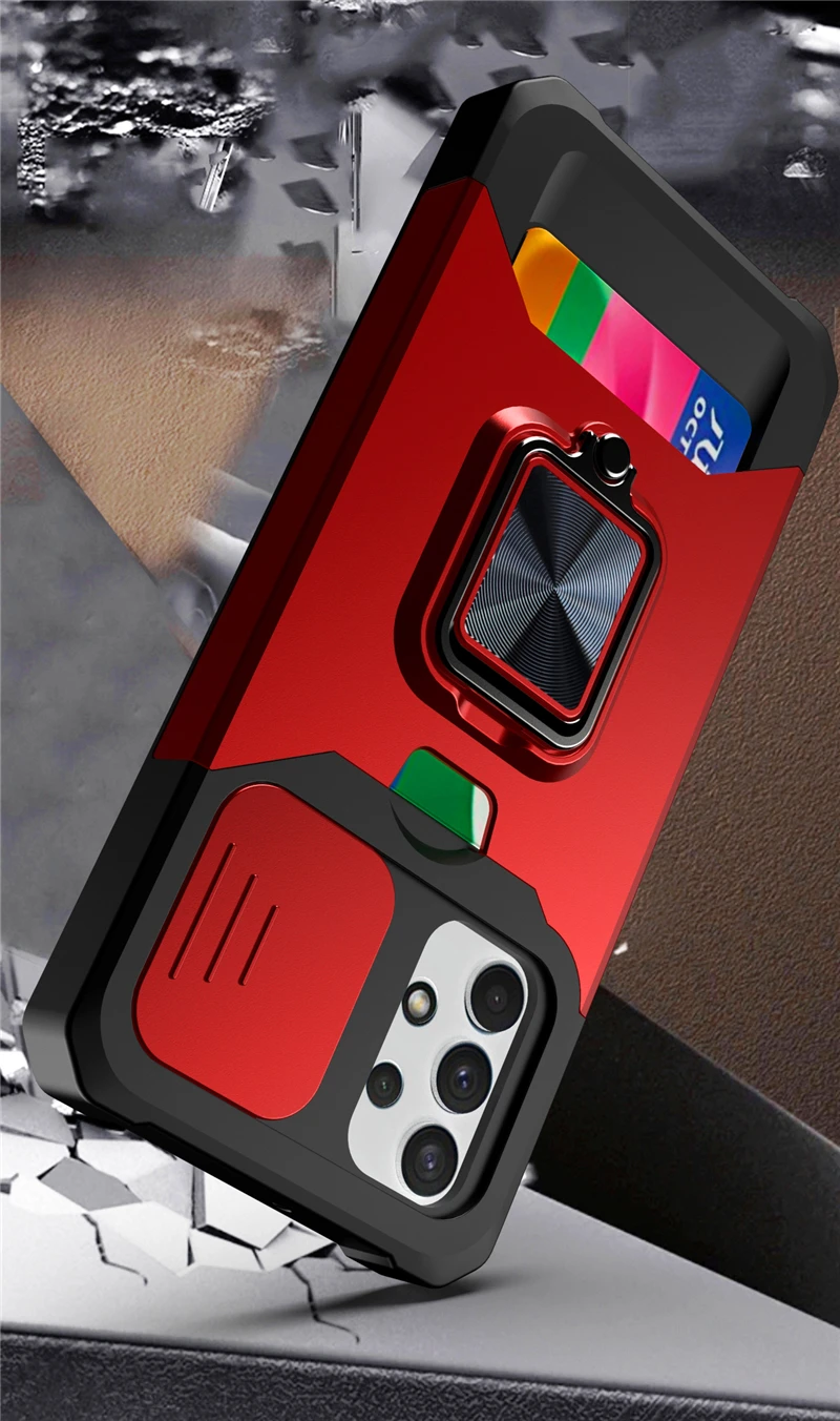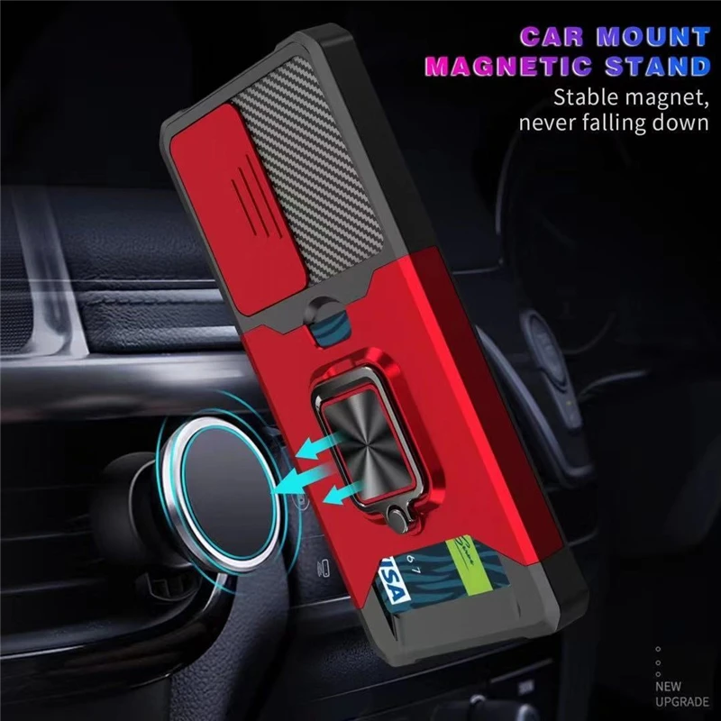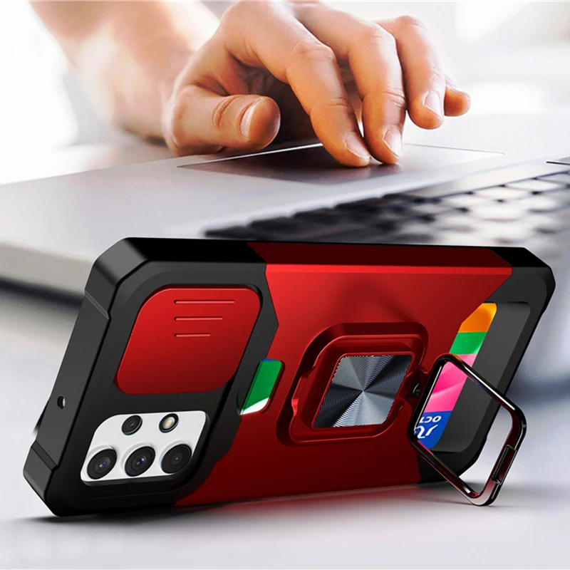 Slide Camera Lens Protector ShockProof Card Bag Magnetic Ring Stand Case For Samsung Galaxy S21 Note20 Series