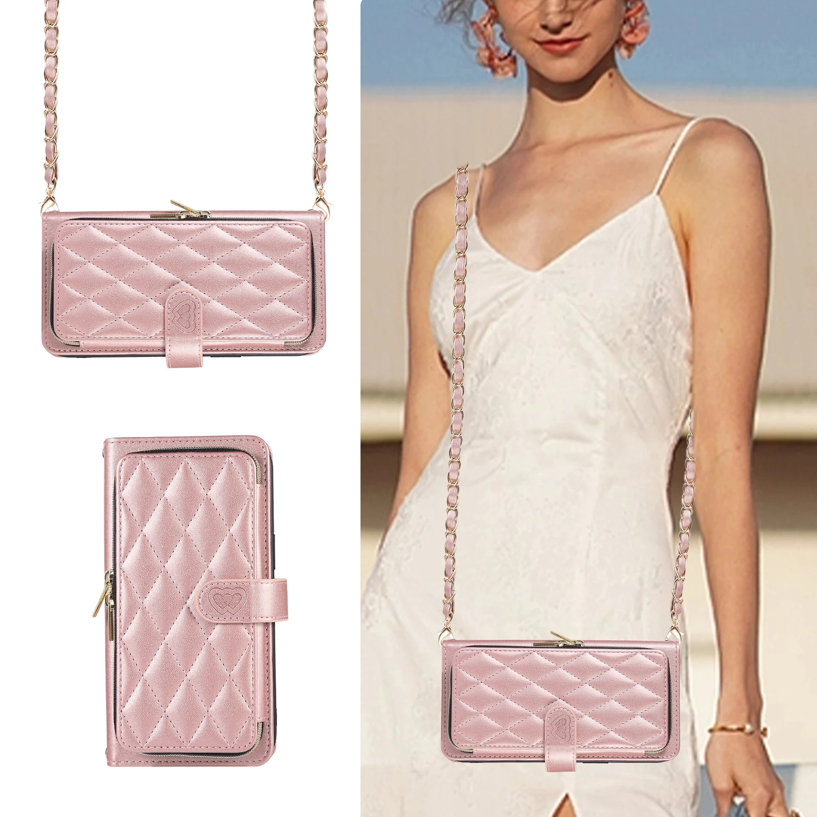 Zipper Lanyard Wallet Cards Crossbody Leather Case for IPhone 15 14 13 12 series