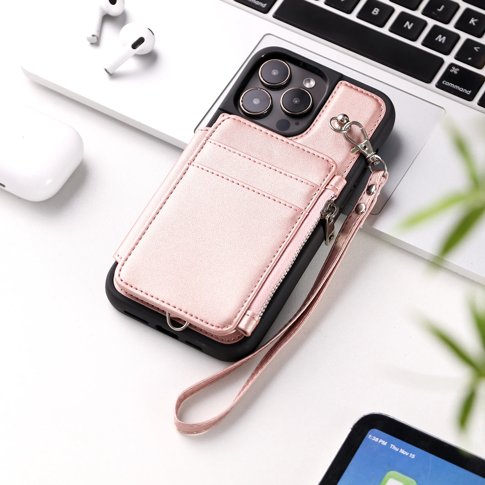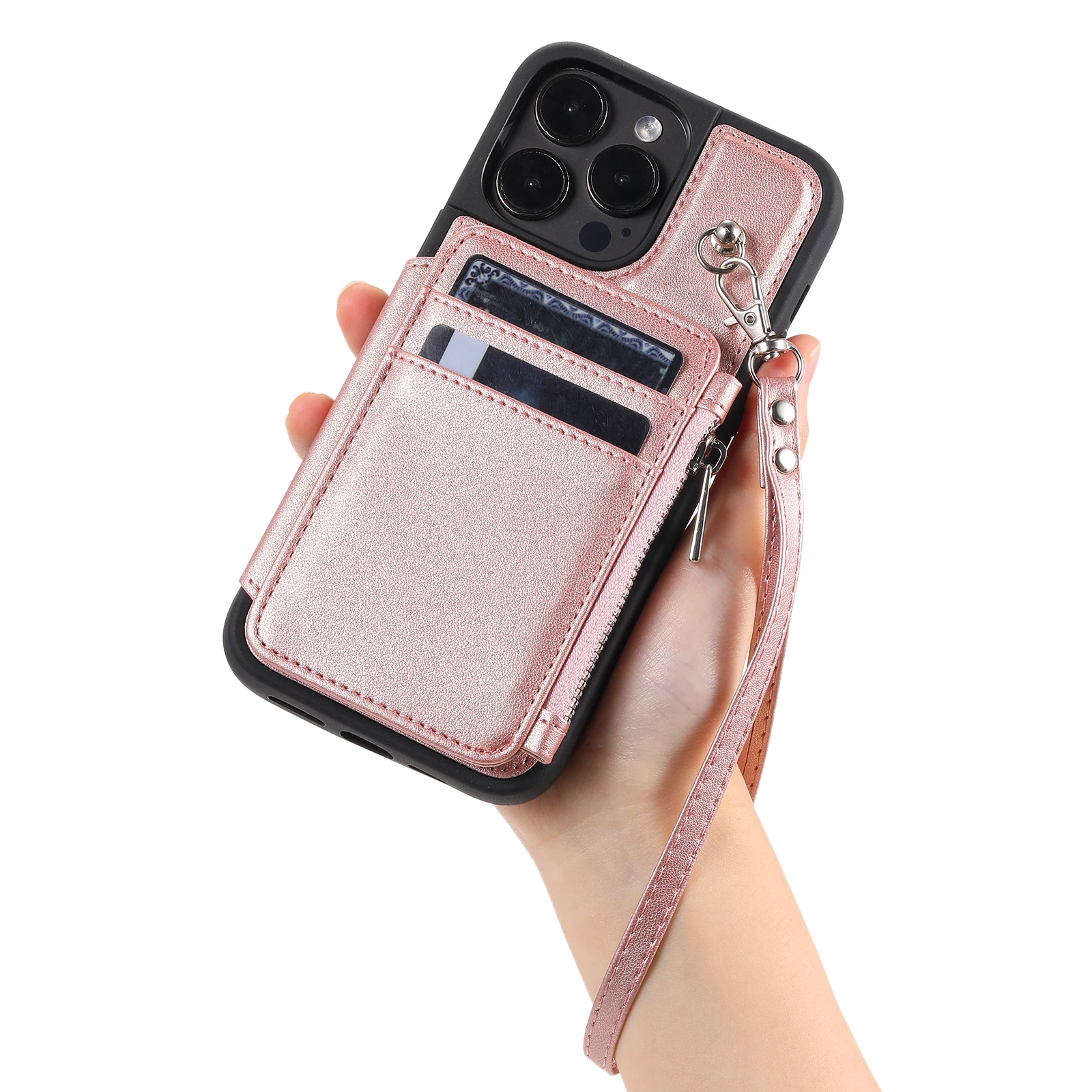 Zipper Leather Wallet Cards Slot Wallet Case for iPhone 15 14 13 12 series